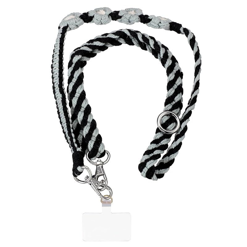 【新品】 [uxcell] スマホランヤードクロスボディ 47.2インチ ボヘミアマクラメネックストラップウィーブ調節可能なスマホランヤードハンドメイドスマートフォンチェーンチャーム 2個 テザータブ付き 黒 1