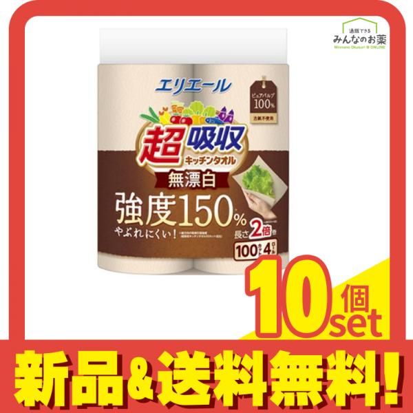 エリエール 超吸収キッチンタオル 無漂白 100カット 4ロール入 10個セット まとめ売り