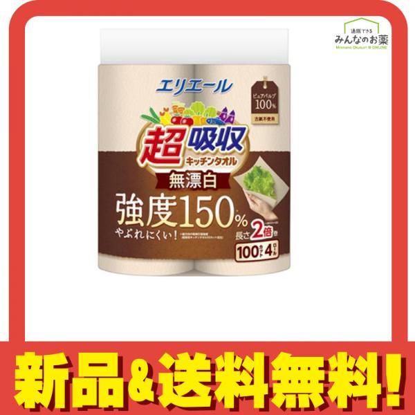 エリエール 超吸収キッチンタオル 無漂白 100カット 4ロール入
