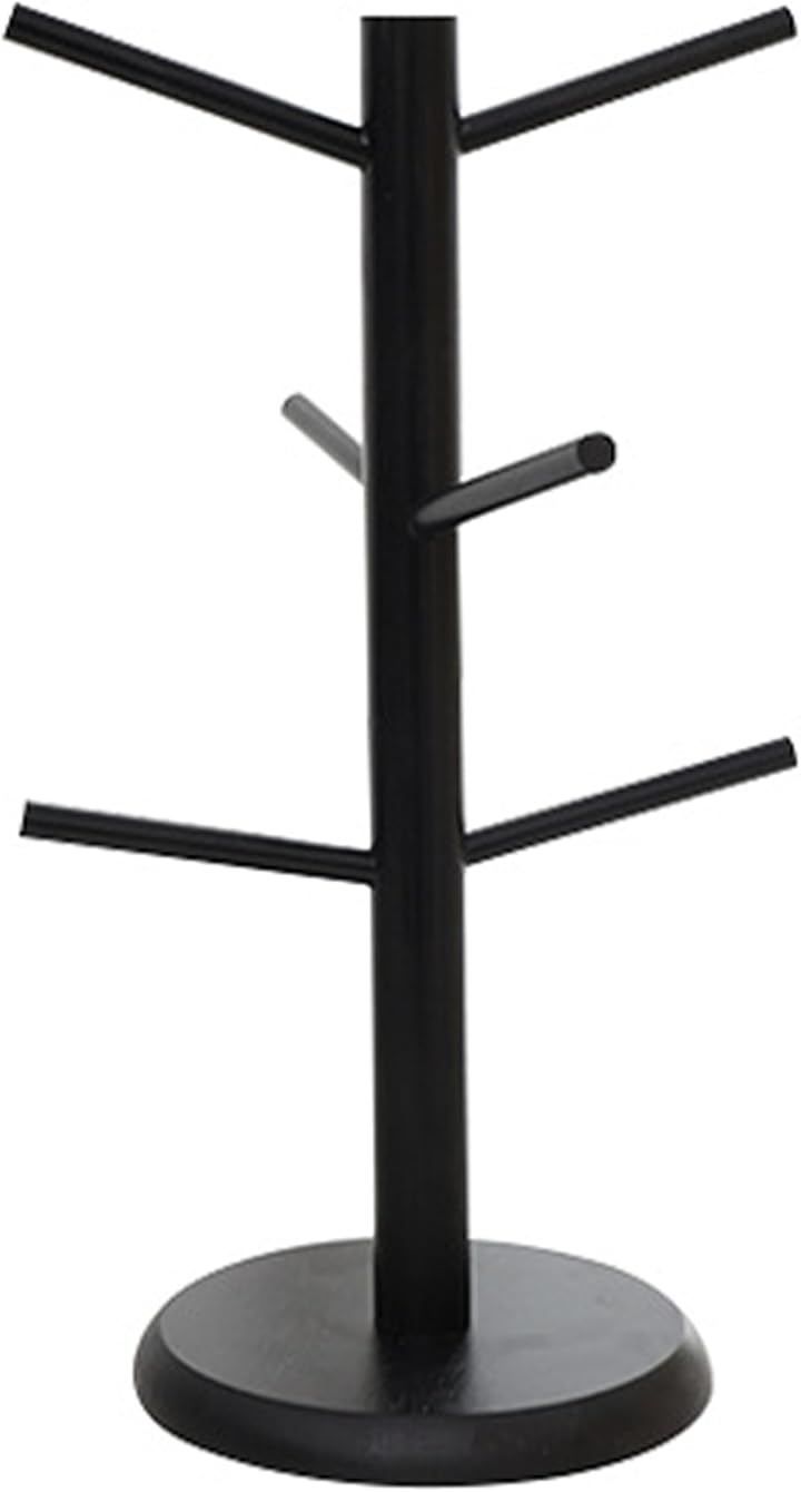 Queen-b マグカップスタンド 木製 6個掛け 省スペース マグツリー キッチン 収納 おしゃれ 北欧風 乾燥ラック カップホルダー 卓上 見せる収納 (ブラック)