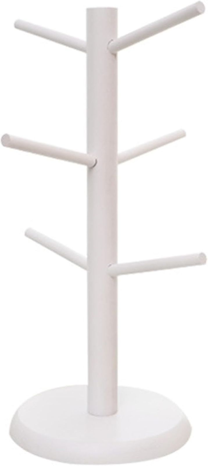 Queen-b マグカップスタンド 木製 6個掛け 省スペース マグツリー キッチン 収納 おしゃれ 北欧風 乾燥ラック カップホルダー 卓上 見せる収納 (ホワイト)