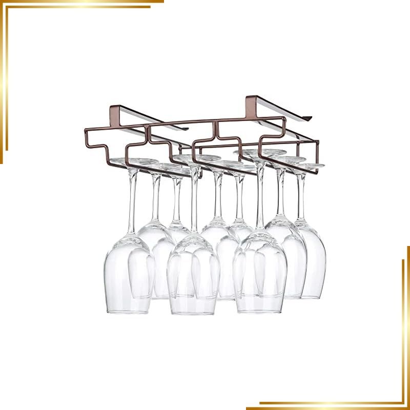【新品】 FOMANSH ワイングラスホルダー 吊り下げ 穴あけ不要 収納可能 ネジ止め不要 棚厚さ調節可能 キッチン 茶色 0