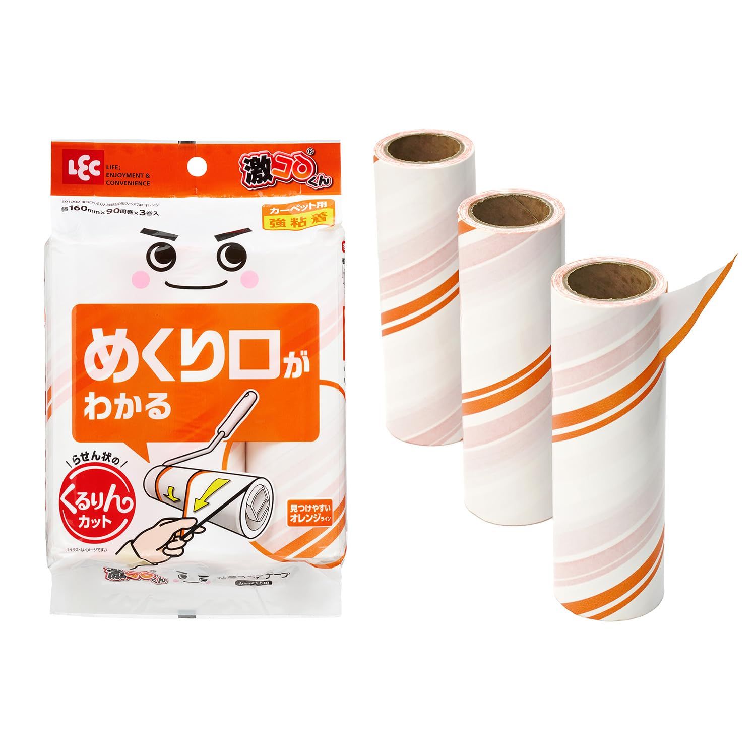 新品 激コロくん ななめにめくるだけ 簡単くるりん カット (90周巻 × 3本) 強粘着/オレンジラインでめくり口がわかりやすい/つまんでひっぱるだけでキレイにはがせます/カット不要/カーペット用