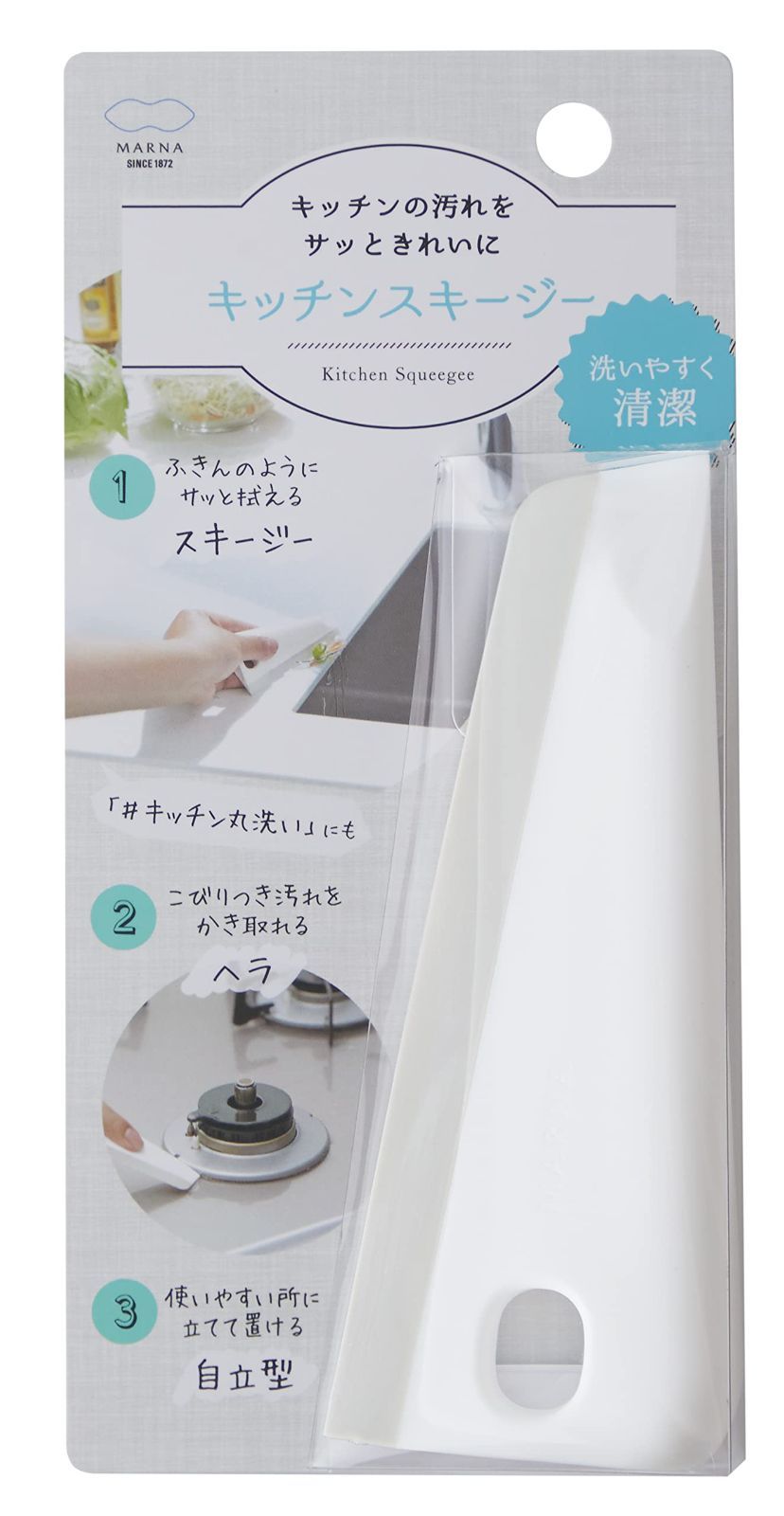【特価商品】マーナ (marna) キッチンスキージー (自立/掛ける/ホワイト) キッチン 調理台 まな板 ふきん 汚れ落とし (かけ収納) 水切りワイパー K759W