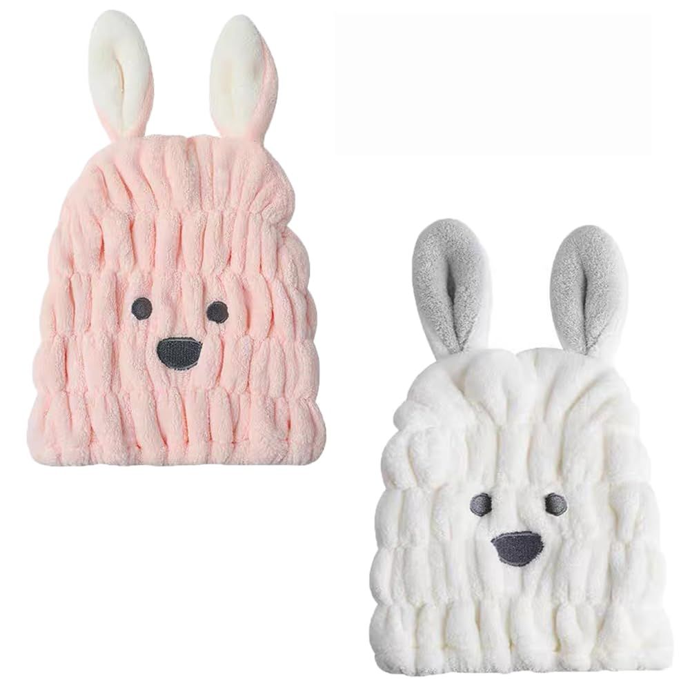 【特価商品】ドライキャップ ヘアキャップ 吸水タオル 大人も子供も使える 吸水性 タオルキャップ お風呂上がり バス用品 速乾 軽量 男女兼用 (ホワイト+ピンク)【2枚セット】