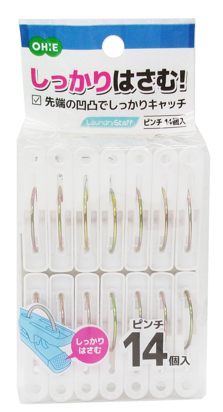 新品 オーエ 洗濯ばさみ 縦5.5cm×横3.2cm×高さ1cm ホワイト Laundry Staff しっかりはさむ 先端凸凹でしっかりキャッチ 14個入