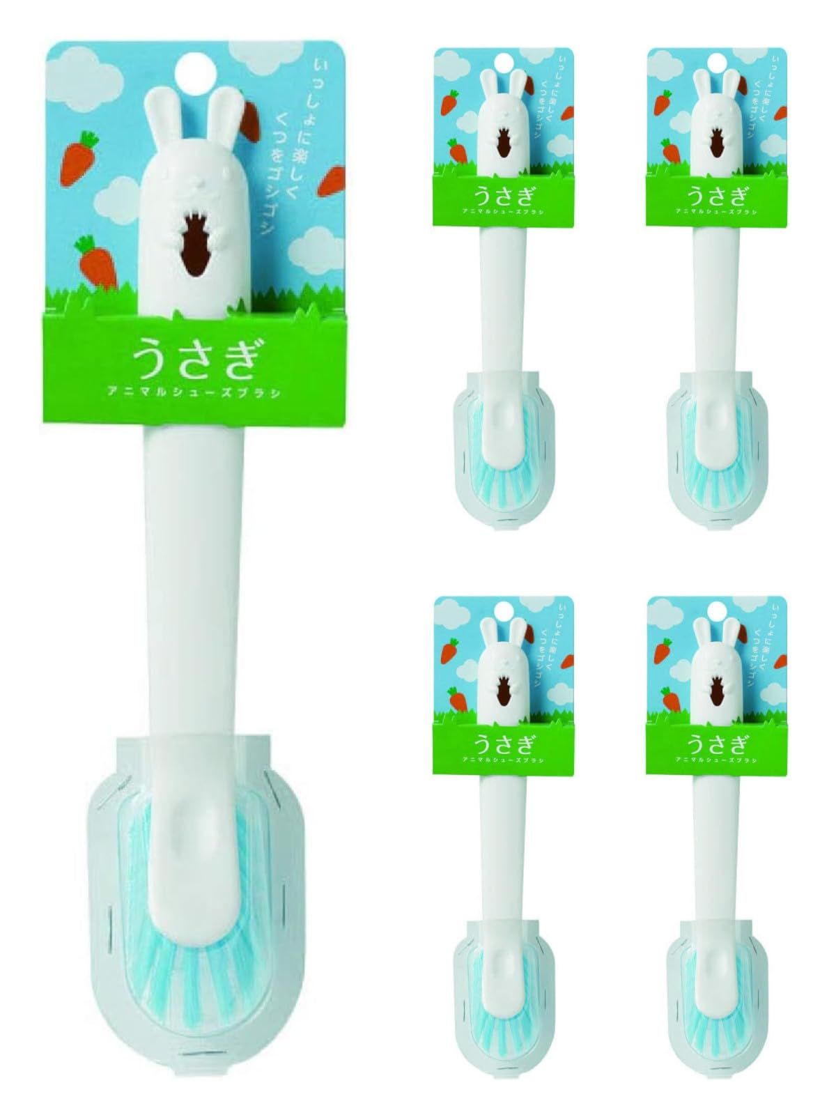 新品 オーエ 洗濯ブラシ 約縦22.5cm×横3.3cm×奥行4.3cm ホワイト アニマル シューズブラシ 靴 うさぎ フックブラシ付き 5個セット
