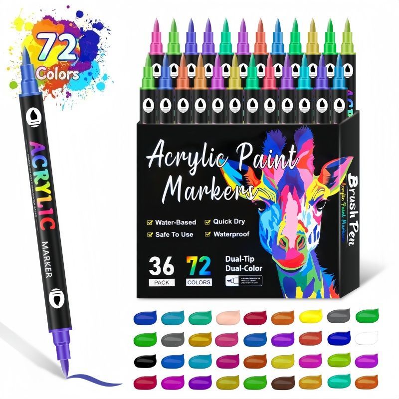アクリルマーカーペン 36本セット 72色 両頭 水性 マーカーペン イラストペン ペイントマーカー 速乾 多用途 DIY 手帳 ガラス 石 木 金属