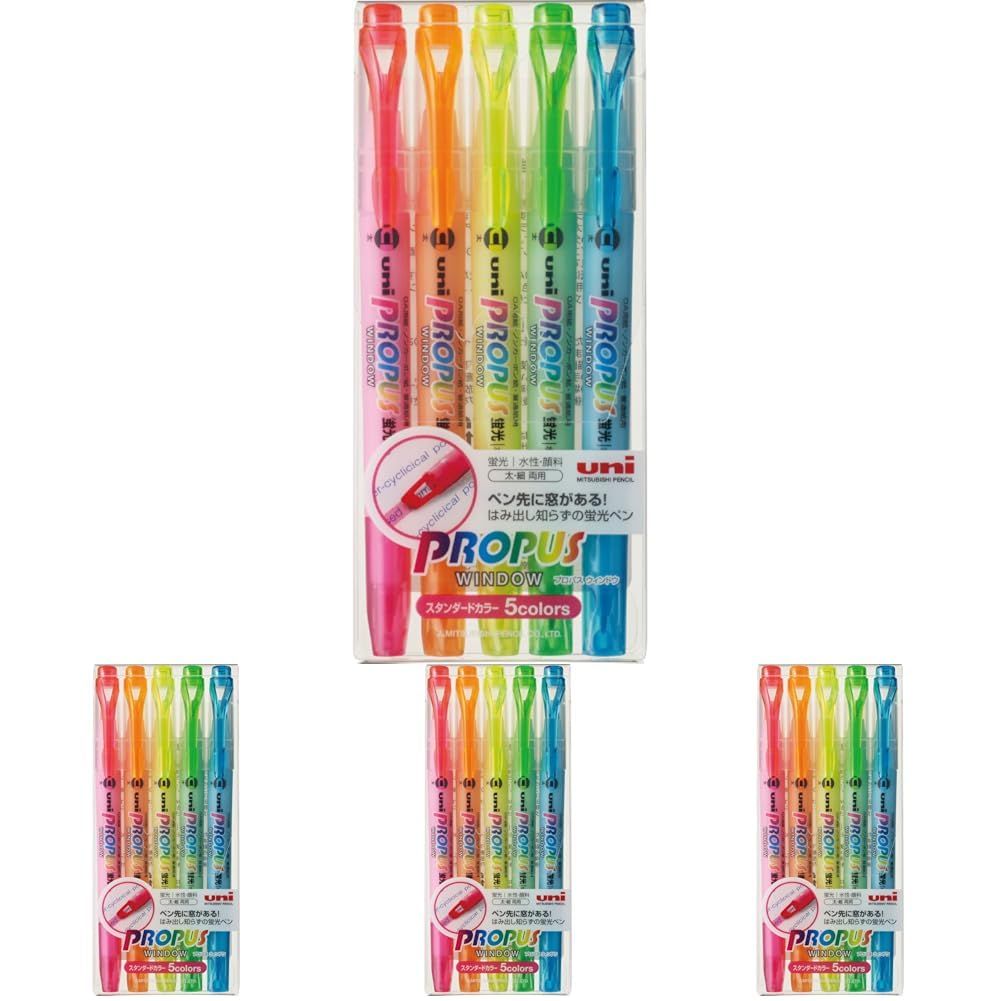 新品 三菱鉛筆 蛍光ペン プロパスウインドウ 5色 PUS-102T.5C 6cm×14cm (× 4)