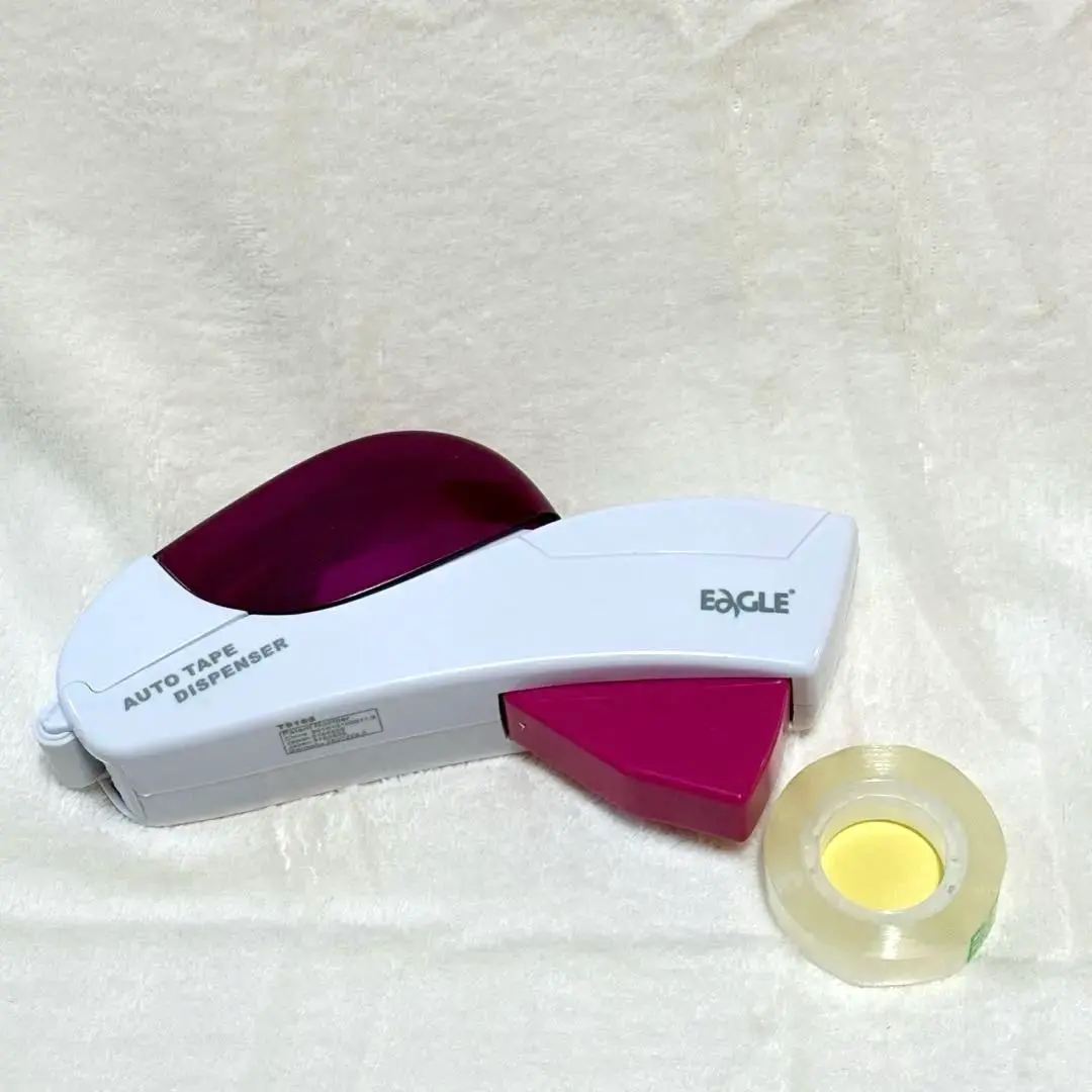 自動テープディスペンサーガン 簡単カッター付き(ピンク)