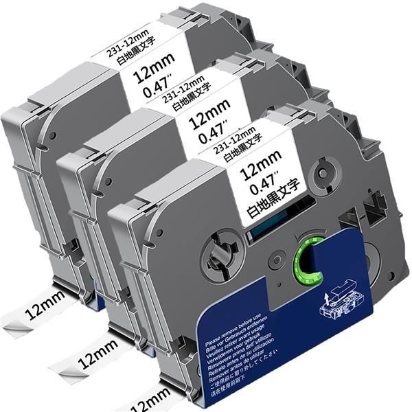 白地黒文字_12mm Lopisfa ピータッチ テープ 12mm 白 ピータッチキューブ テープカートリッジ 互換品 tzeテープ tze-231 ブラザー P-touch Pタッチ ラミネート カートリッジ