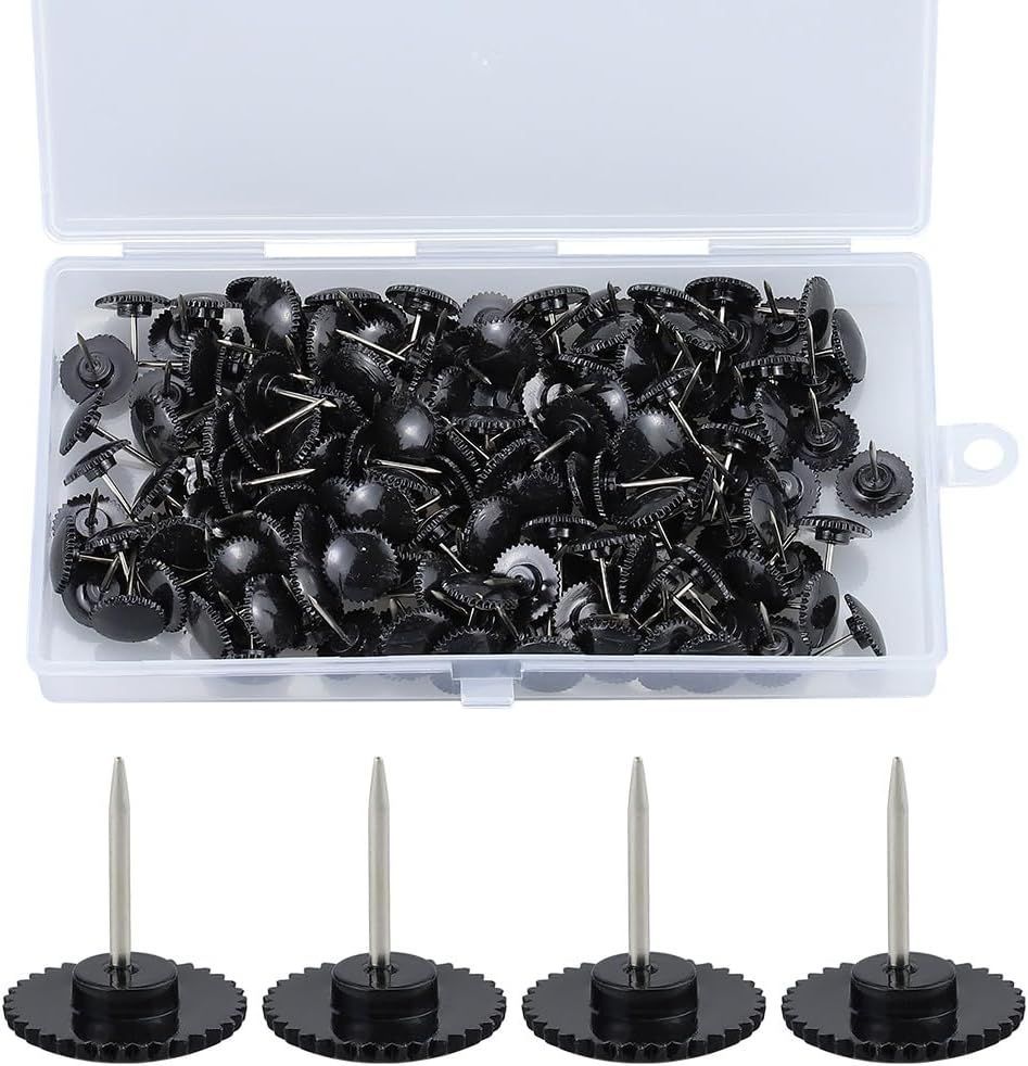 【約300個セット】画鋲 ブラック 収納ケース付き 押しピン 文房具 固定用 DIY 掲示用品 b-413