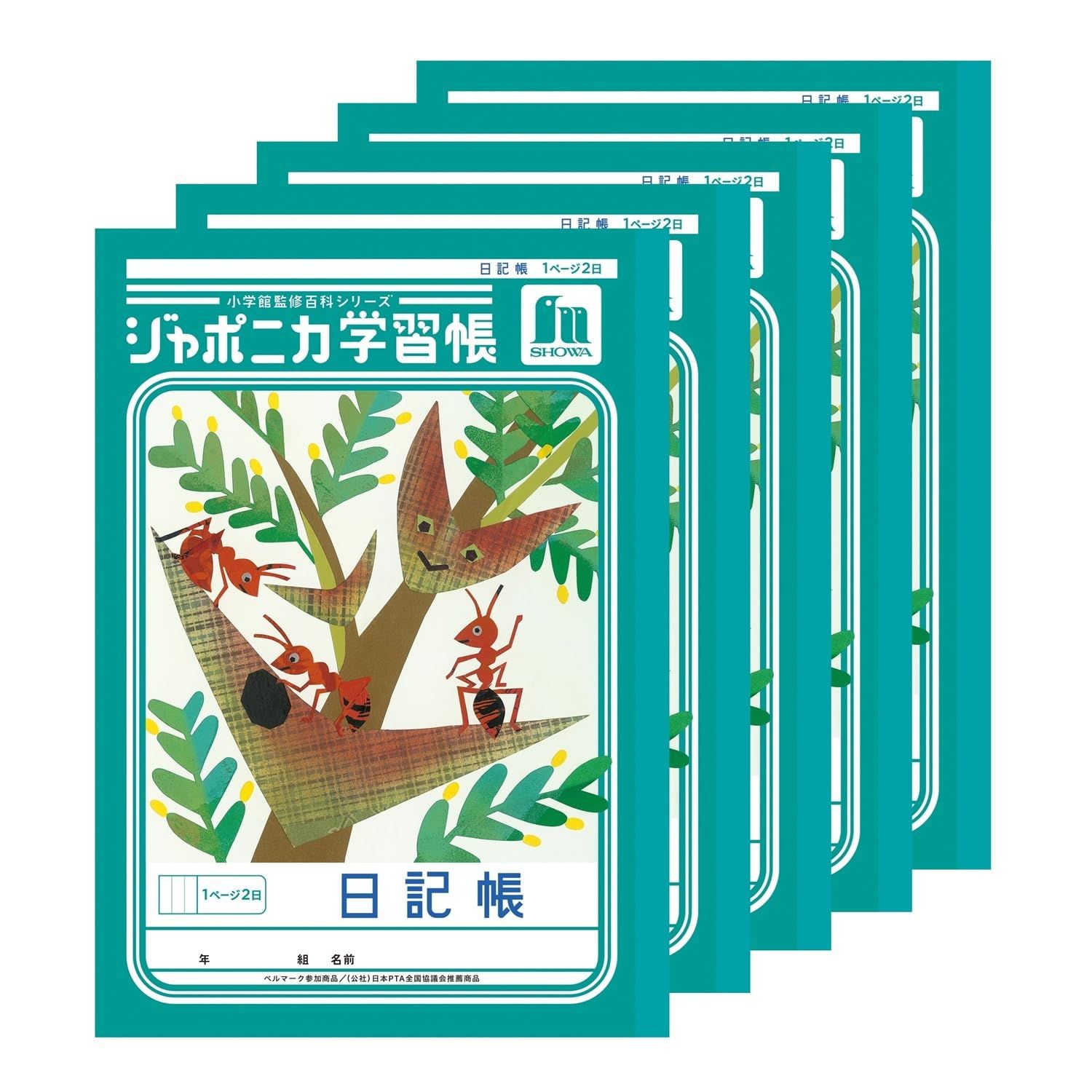 新品 ショウワノート ジャポニカ 学習帳 日記帳 1ページ2日 セミB5サイズ 5冊パック 緑 00147001*5