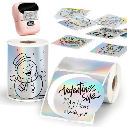 HuiJuKeJi 2ロール ホログラフィック シルバー 感熱ラベル用紙 Phomemo M110 M200 M220 M221,50x50mm用 ラウンド□防水 自己粘着 ミニプリンター レーザーステッカー DIY グリッターラベル/サンクスカード用/