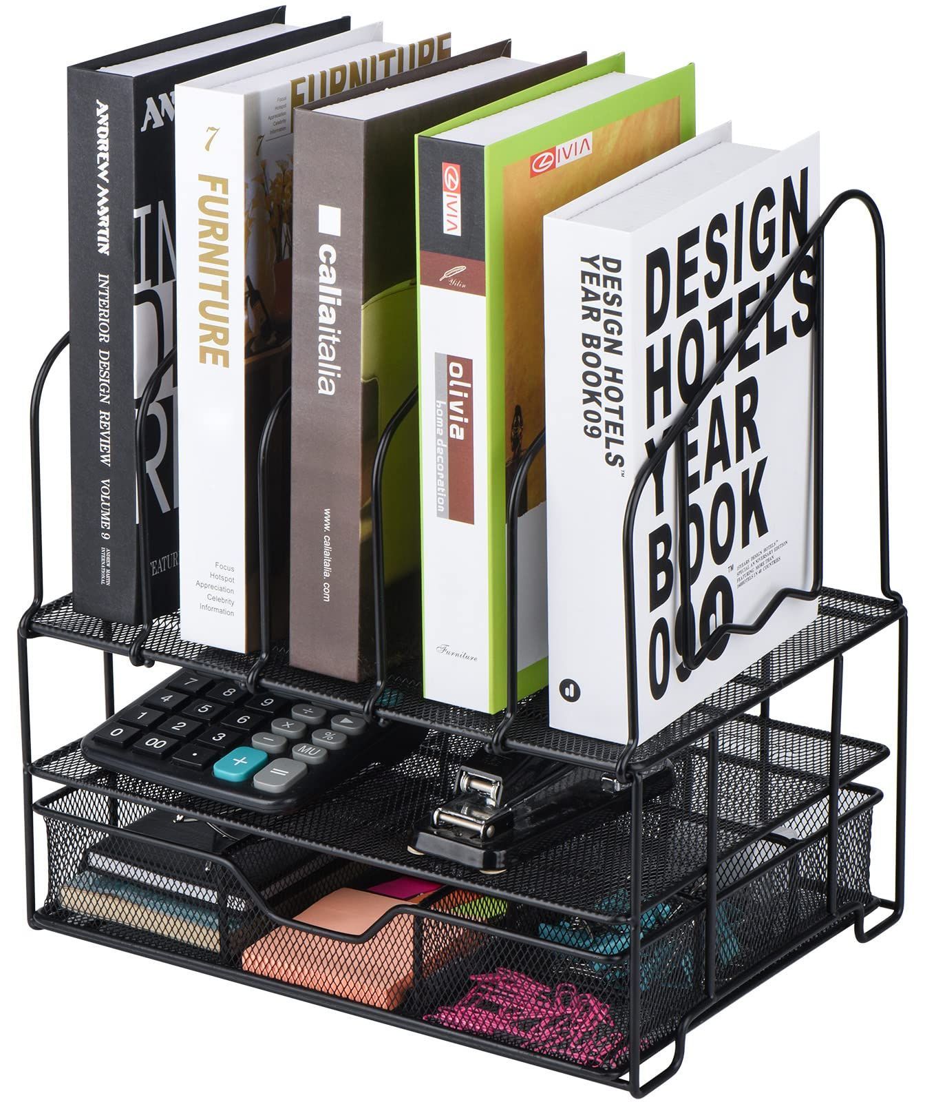 ZCZN 卓上メッシュ収納ラック スライド式引出し デスクオーガナイザー ダブルトレイ 卓上収納ラック メッシュタイプ 整理整頓 (ブラック)