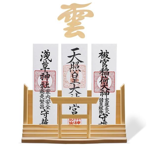 ?三社鳥居神棚本体【白松】+雲板 [Tonbobo] 神棚 神棚鳥居 【神棚&雲板セット】 お札立て おふだ立て 神棚 置き型 モダン神棚 鳥居彫刻 おしゃれ 壁掛け 穴開けない 鳥居タイプ 白松 木材 自宅用