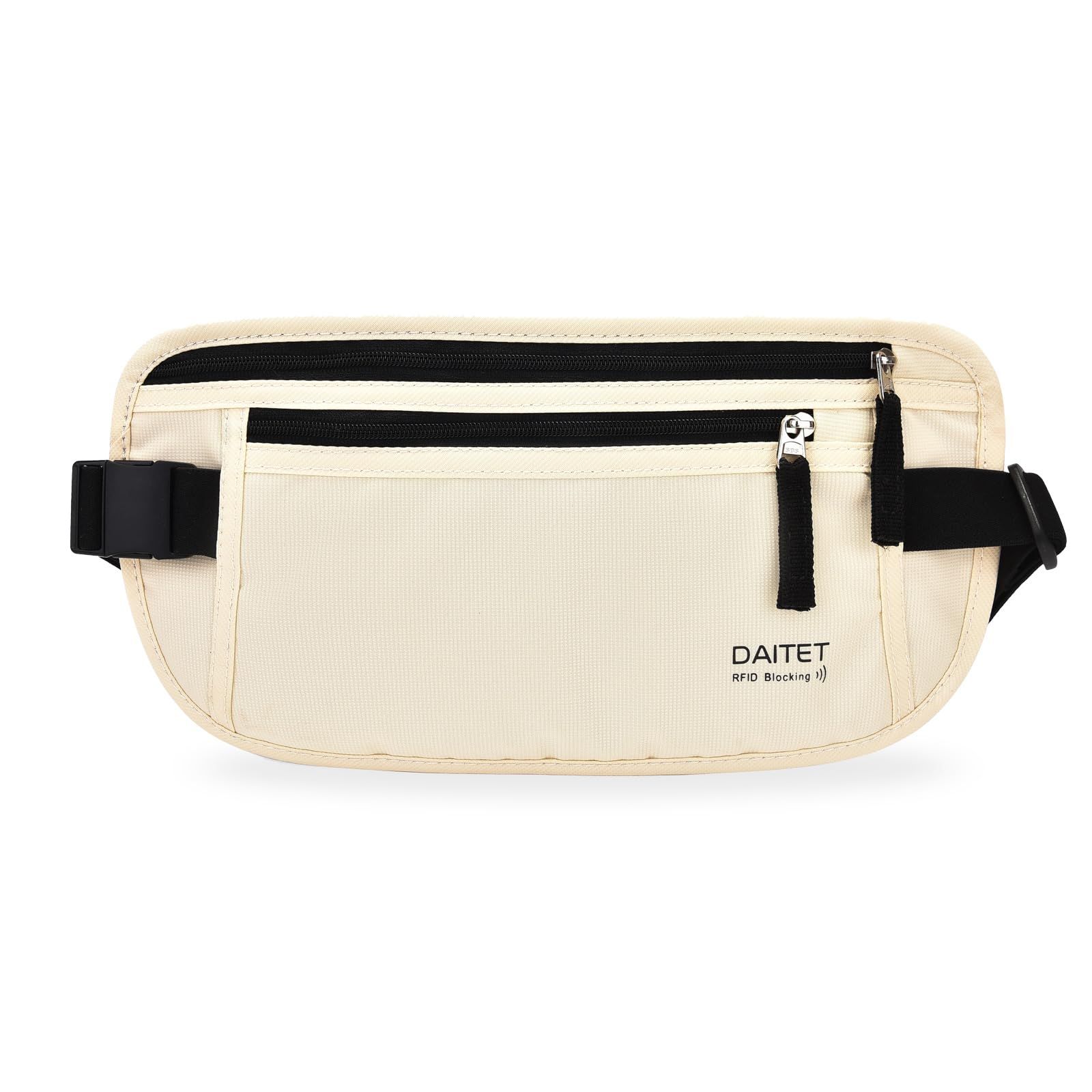 DAITET お金ベルト - パスポートホルダー安全非表示Travel Wallet with RFIDブロック、Undercover Fanny Pack ブラック [ブラック] [Rfid Blocking & Belt Wide:1inch]