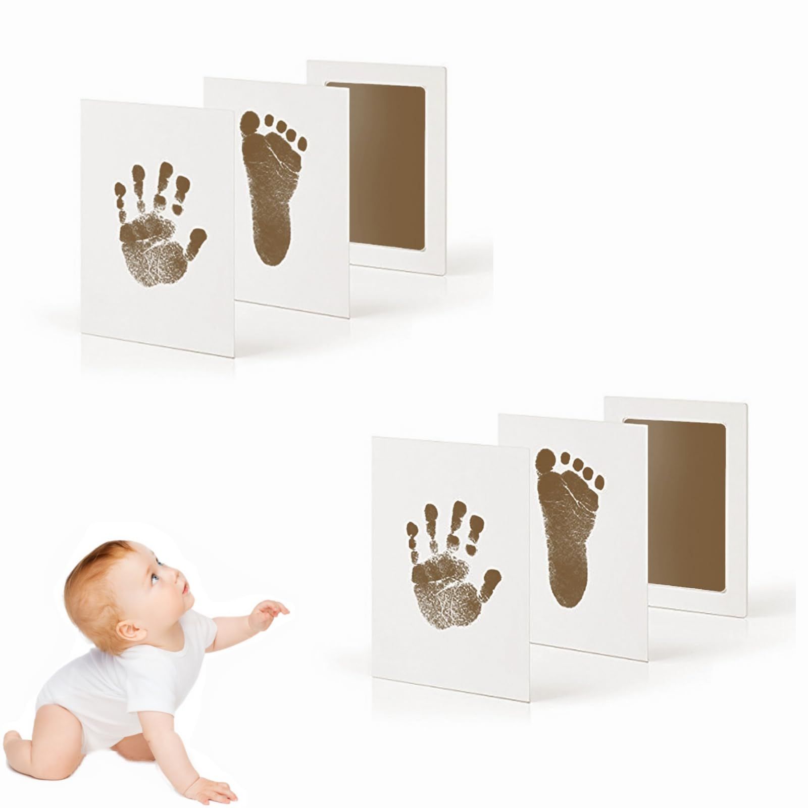 【新着商品】記念品ブラウン 猫犬手足型 成長記録 1歳誕生日 新生児 出産祝い ギフト ベビーフレーム 足形キット2セット汚れないインク 手形 赤ちゃん YFFSFDC