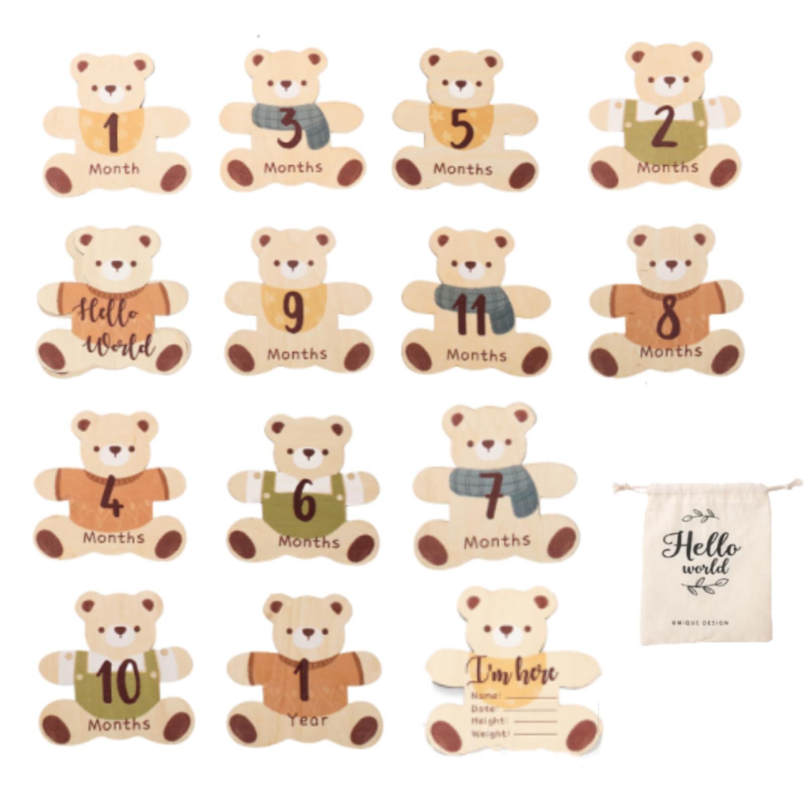 特価商品 YFFSFDC 月齢フォト ベビーマンスリーカード7枚セット収納袋付きクマ形 ウッド 天然木製 ニューボーンフォト 記念日フォト 成長記録写真道具 新生児 赤ちゃん 出産祝い 再利用可能女の子男の子