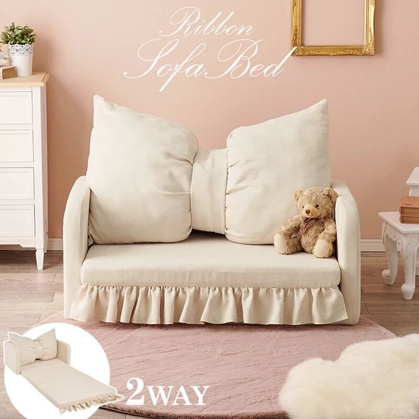 ソファベッド 可愛い 2WAY リボン フリル 姫系 コンパクト