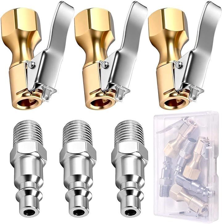 LEONTOOL 3個 タイヤエアチャック ヘビーデューティ真鍮エアチャック クローズドフロー ストレートタイヤチャック タイヤチャックオープンフレーター タイヤエアクリップチャック 空気注入対応 複数バルブ適合 アウトドア整備用 (イエロー)