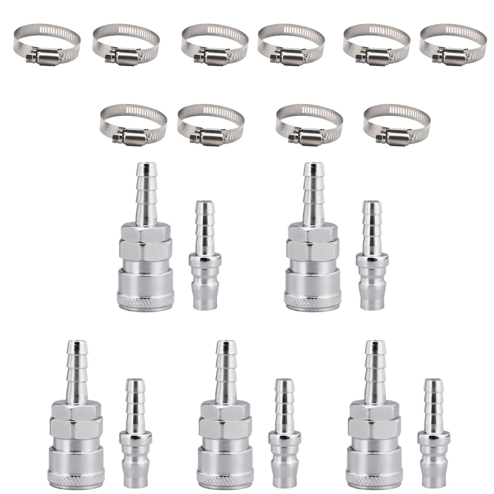3 Spring エアーカプラー ソケット&プラグ バンド 5組セット エアーホース PH SH 鉄鋼製 ニッケルメッキ ホースジョイント クイックジョイント エアコンプレッサー スプレーガン エアホース用 耐久・耐圧 [PH40+SH40+Φ16-25mm]
