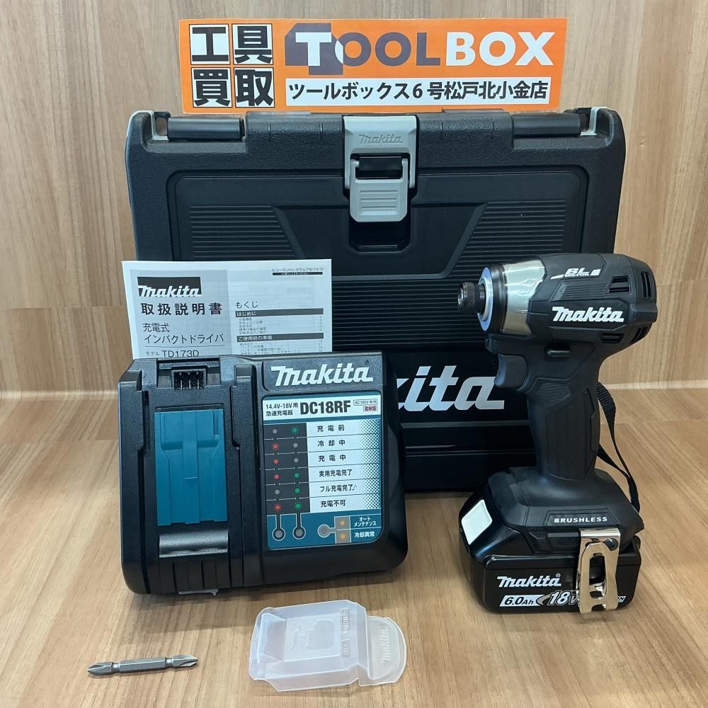 【未使用・バッテリー1個】makita TD173D 18V充電式インパクトドライバ黒(6.0Ahバッテリー1個・充電器セット)【204】