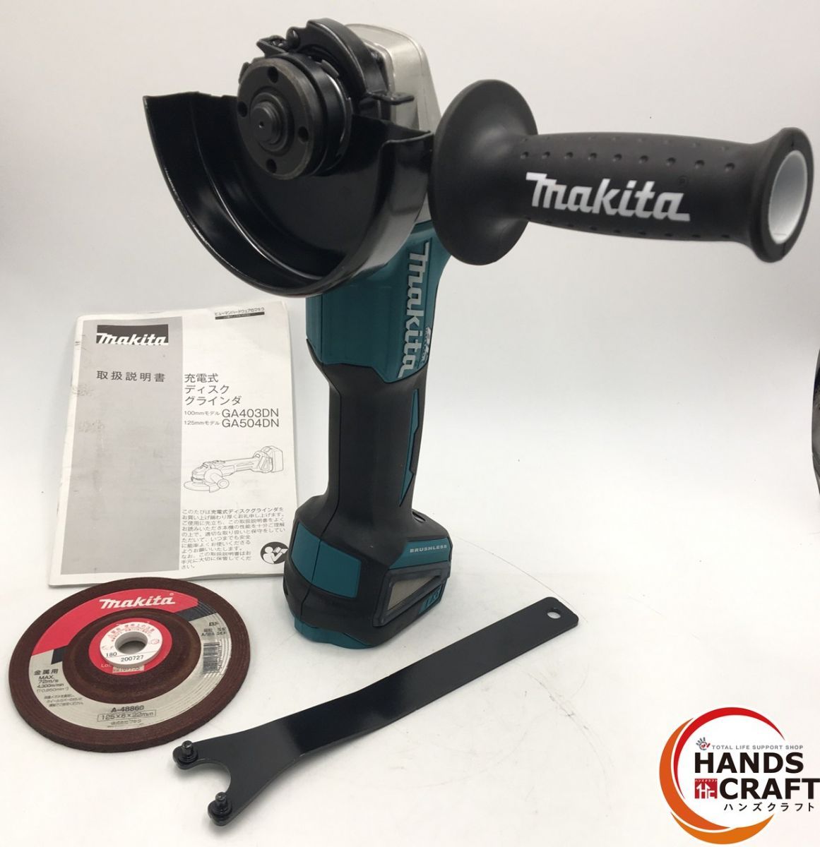 ☆【中古品】マキタ 18V 125mm 充電式ディスクグラインダ GA504D ※研削砥石 A-48860・ロックナットレンチ 7820342・サイドグリップ付き