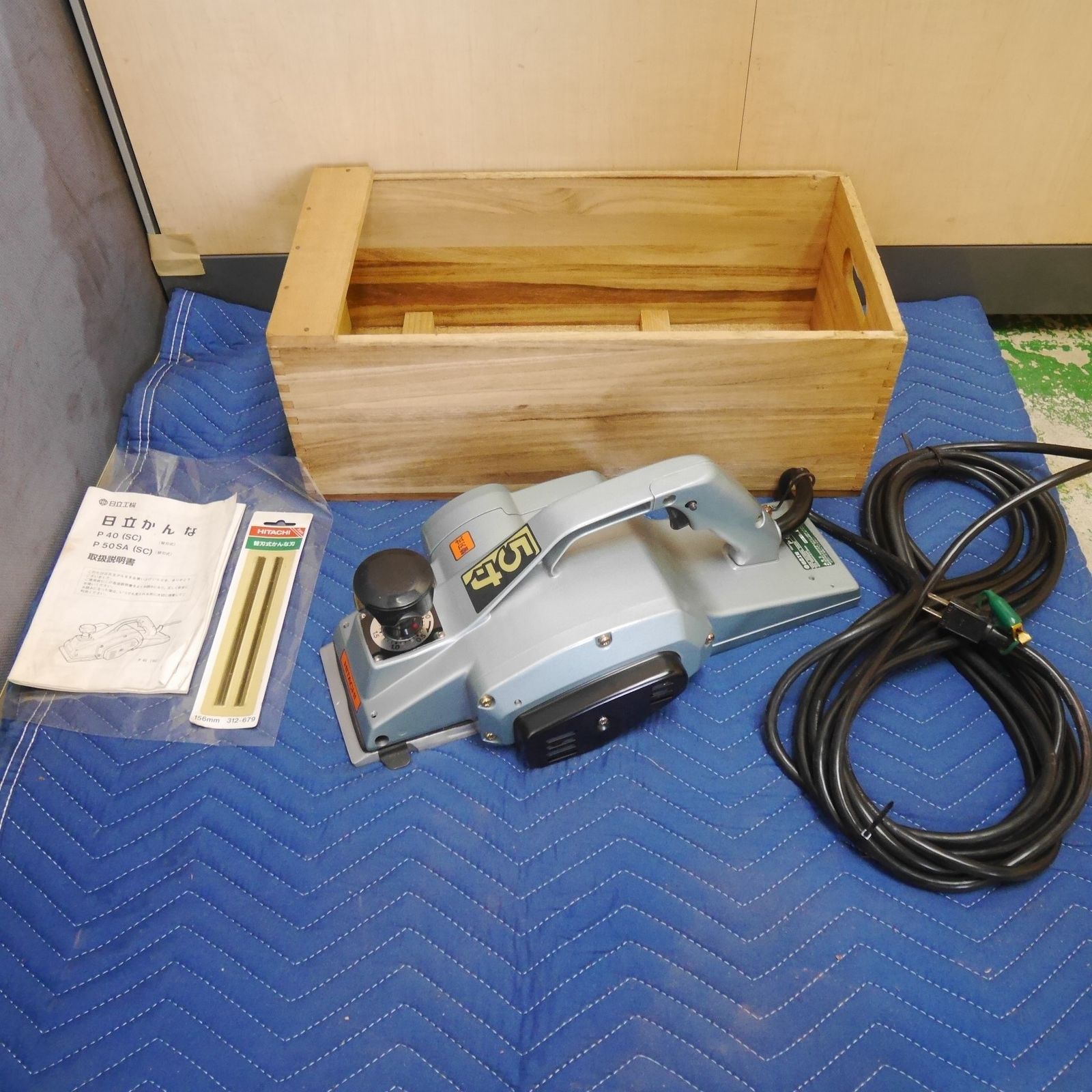 ☆中古品☆HITACHI 日立工機 100V 電子かんな P40V 木箱付 切削幅136mm コード式 電気かんな 電子カンナ 電気カンナ 大工道具124820