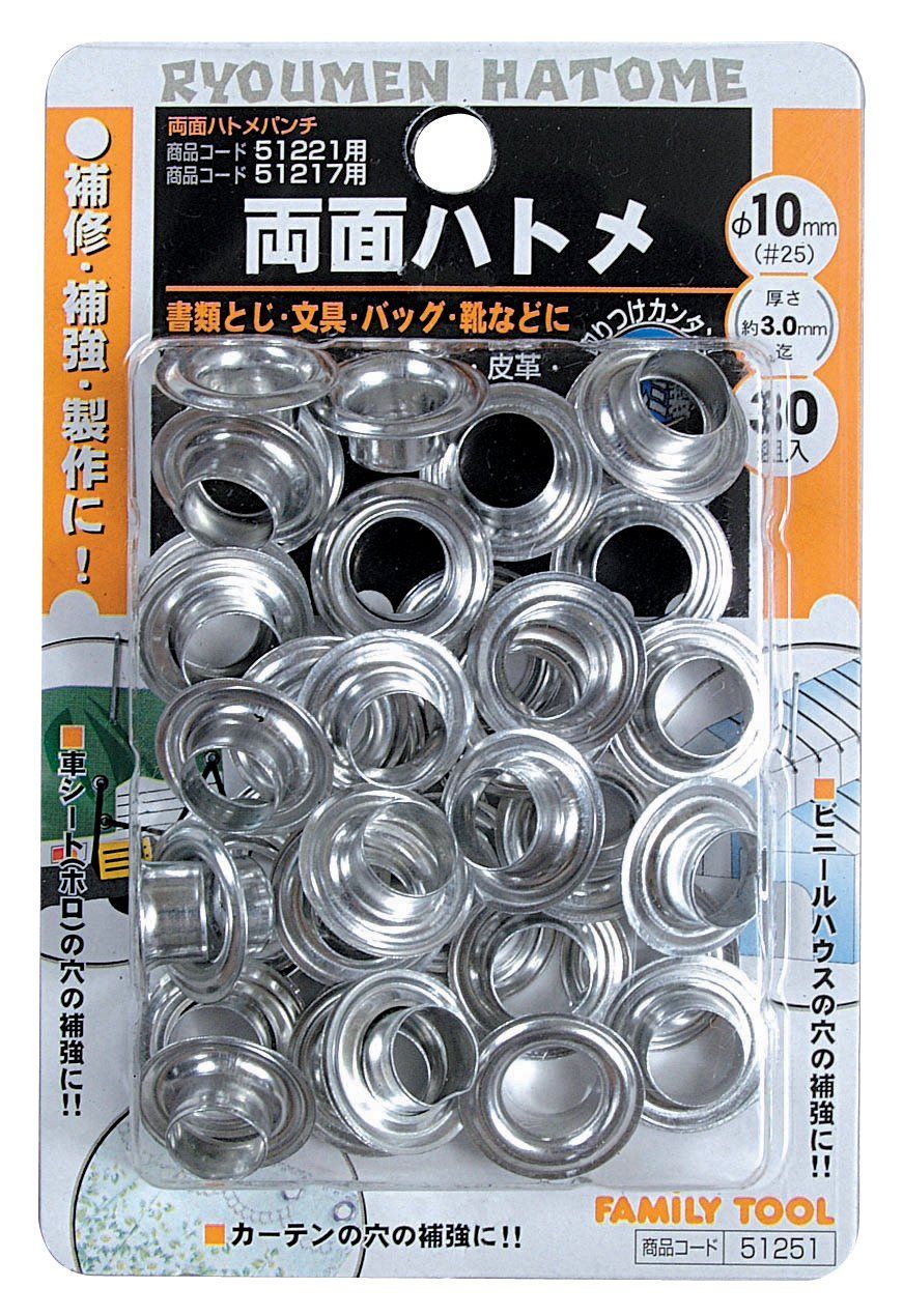 【特価商品】イチネンアクセス FAMILY TOOL(ファミリーツール) ハトメ 両面ハトメ 10mm(#25) アルミ製 51251 30組入 商品コード51221/51217用