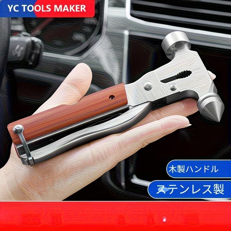 多機能 折りたたみ ハンマー カッター ボトルオープナー ワイヤーストリッパー ドライバー 頑丈 スチール構造 人間工学設計 滑り止めグリップ