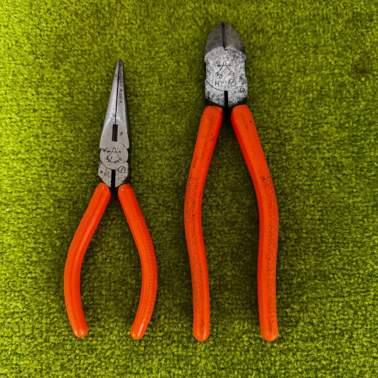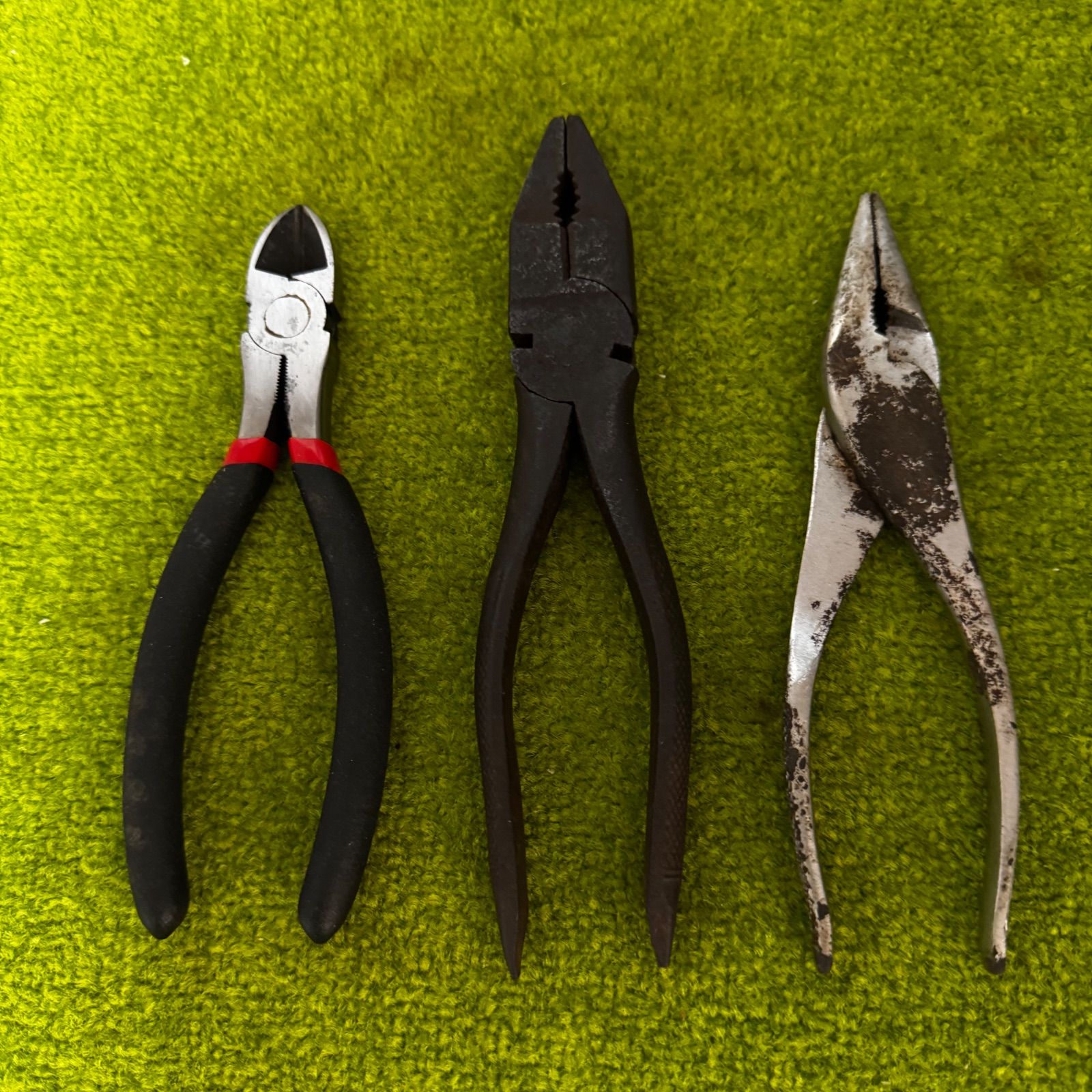 【清掃済★タフ仕様】★工具★3点セット★ペンチ★ニッパー★ロングノーズプライヤー★180mm★大型★切断★保持★DIY★ガレージ★整備★メンテナンス済★ジャンク