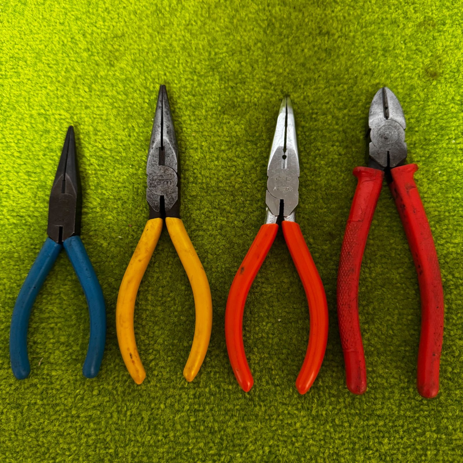 【清掃済★HOZAN他】★ニッパー★ラジオペンチ★4点セット★P-15★NP-150Z★AE-32★ホーザン★縦曲がり★精密作業★工具★まとめ売り★日本製★電設★DIY★メンテナンス済