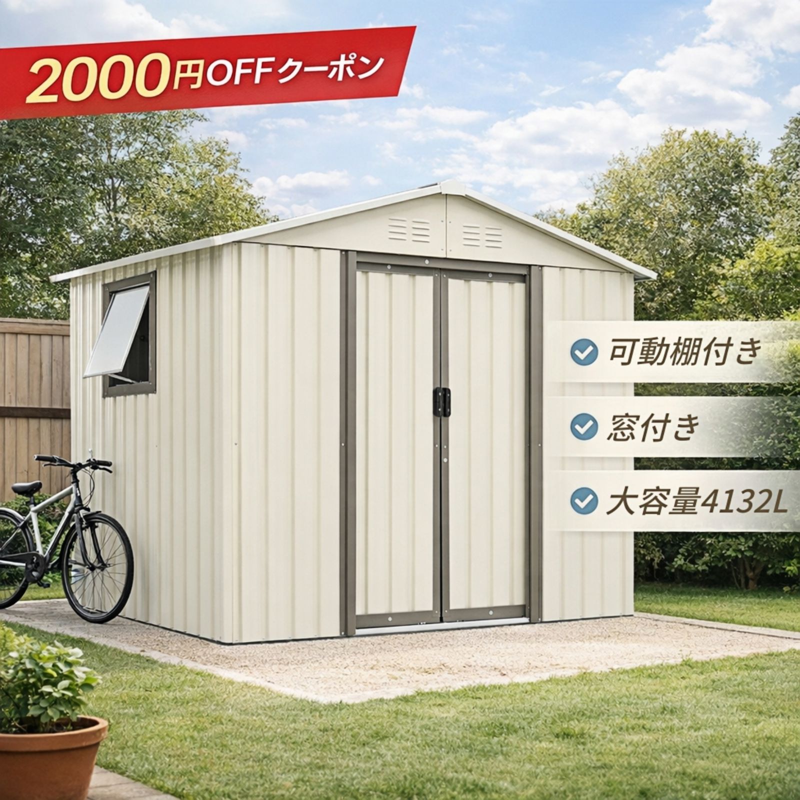 【2000円クーポン配布中】物置 屋外 倉庫 スチール 大型 収納庫 可動棚付き すべり出し窓付き 194×162×184cm 防水 防錆 高耐久 ガーデン収納 引き戸 庭 色は3種類選べるWHITE✕NATURAL✕BLUE