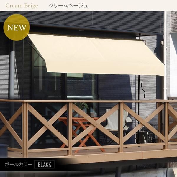つっぱりオーニング 2m ベージュ×ブラック オーニングテント 日よけシェード サンシェード 庭 オーニング シェード 日よけ つっぱり 日除けスクリーン 日除け 目隠し 外側 紫外線 UVカット 撥水