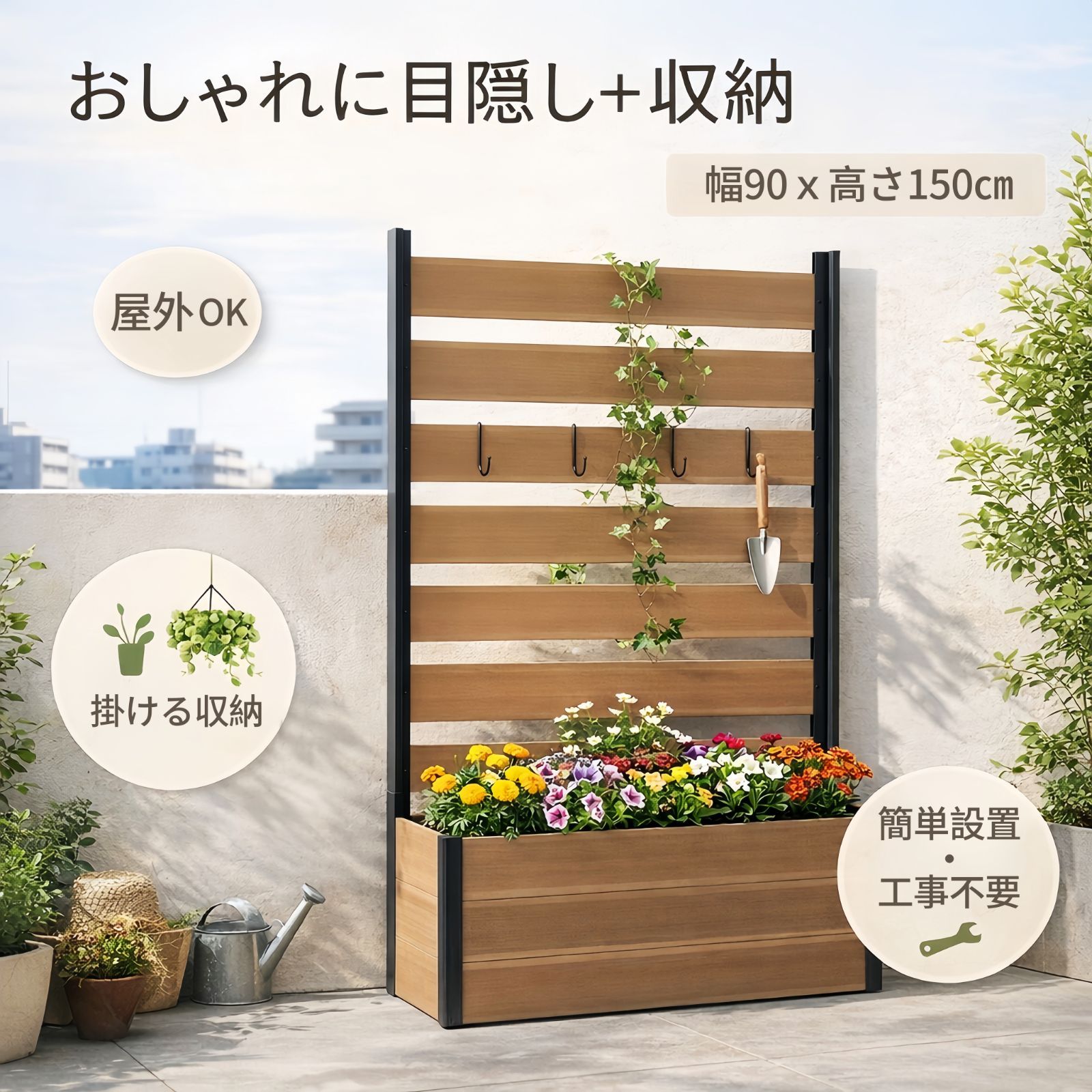 【4/30まで1000円OFFクーポン】プランター付きフェンス 幅90×高さ150cm ガーデンフェンス 目隠しフェンス フェンス 屋外 ベランダ 庭 おしゃれ 収納付き ラティス 簡単設置 工事不要 園芸 ガーデニング エクステリア NATURAL