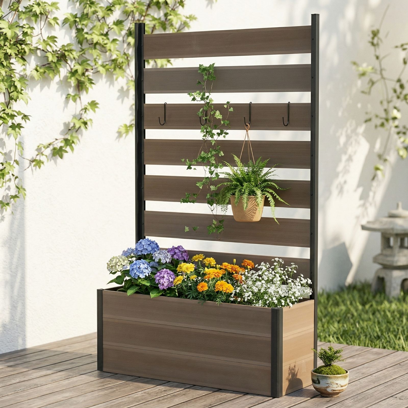 【4/30まで1000円OFFクーポン】プランター付きフェンス 幅90×高さ150cm ガーデンフェンス 目隠しフェンス フェンス 屋外 ベランダ 庭 おしゃれ 収納付き ラティス 簡単設置 工事不要 園芸 ガーデニング エクステリア BROWN