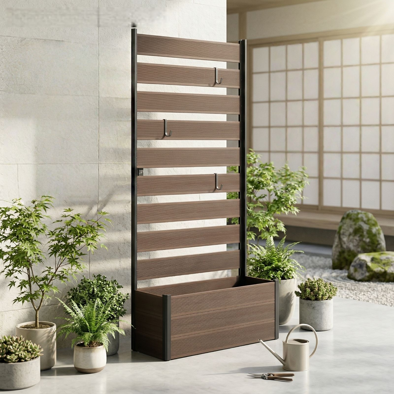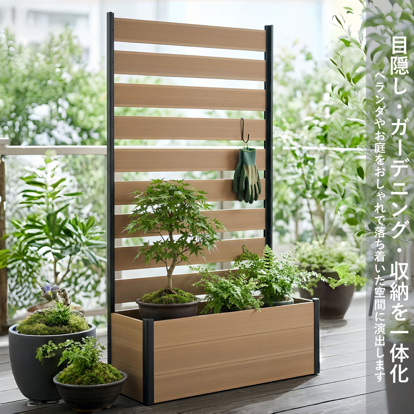 【4/30まで1000円OFFクーポン】ウッドフェンス プランター付きフェンス 目隠し フェンス ハイタイプ 幅90×高さ180cm 人工木 ガーデンフェンス ベランダ 庭 屋外 おしゃれ 収納 フック付き 簡単設置 工事不要 ラティス BROWN