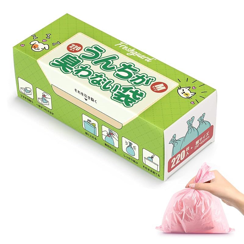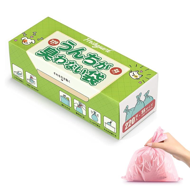 うんちが臭わない袋 防臭袋 徹底消臭 7層構造 使用便利 犬用 うんち処理袋 箱型【袋カラー:ピンク】 (SSサイズ 220枚入)