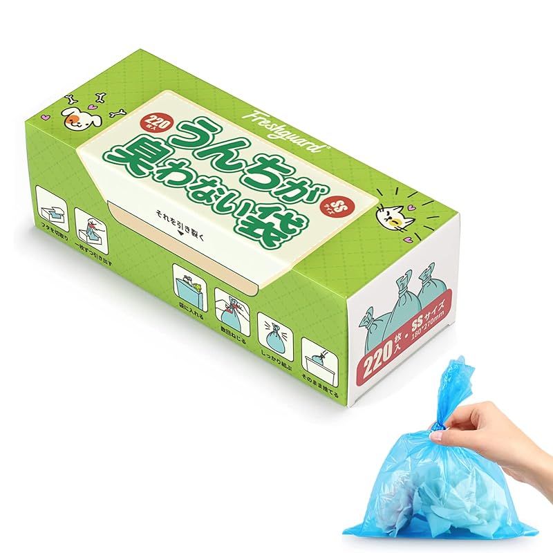 うんちが臭わない袋 防臭袋 徹底消臭 7層構造 使用便利 ペット用 うんち処理袋 箱型【袋カラー:ブルー】 (SSサイズ 220枚入)