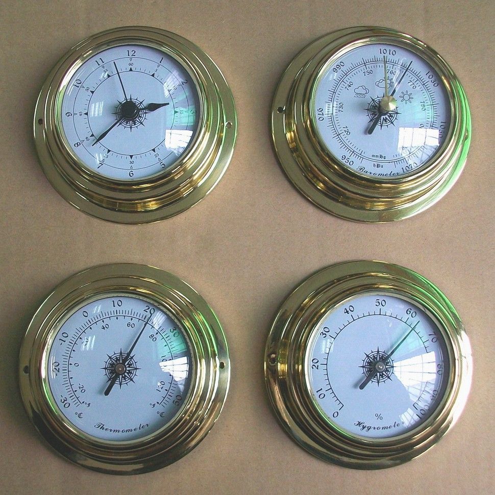 つセット ブラス 真鍮 時計 温度計 湿度計 気圧計 ビンテージ 船 窓 ボート アンティーク トレーラーハウス 4p