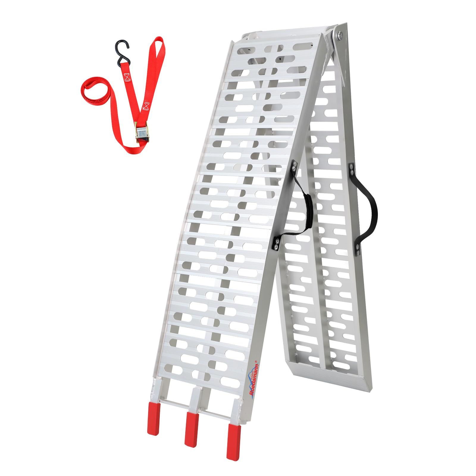 トレーラー バン ガレージの積み降ろし 軽トラ 農機具用 草刈り機 ATV四輪バギー スロープ バイク 滑り止め加工 取っ手付き 1本 軽量 ラダーレール 折りたたみ式 耐荷重340kg 幅28cm 長さ222.5cm アルミラダーレール Ruedamann