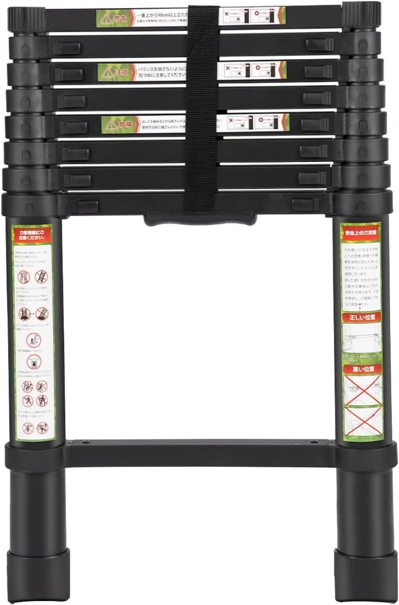 (040908ブラック, 2.6m)伸縮はしご 耐荷重150kg 軽量 持ち運びやすい 折り畳み 伸縮梯子 多機能アルミはしご 自動ロック スライド式 伸縮自在 梯子 室内室外両用 スライド式