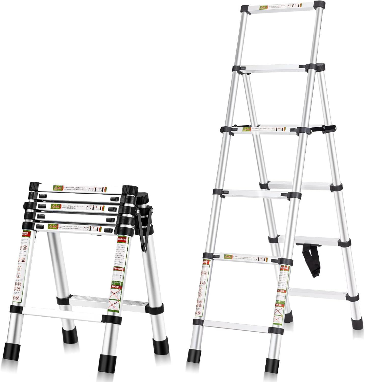(0409091.4+1.7m)伸縮脚立 踏み台 軽量伸縮自在 折りたたみ 持ち運び便利 室内屋外両用 アルミ 自動・安全ロック付き 耐荷重150 kg
