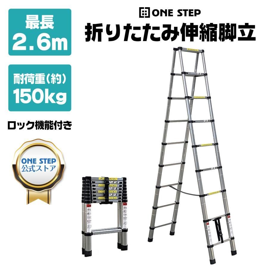 脚立 アルミ 9段 2.6m+2.6m 伸縮 折りたたみ 踏み台 伸縮脚立 梯子 はしご スライド式 安全ロック 耐荷重150kg