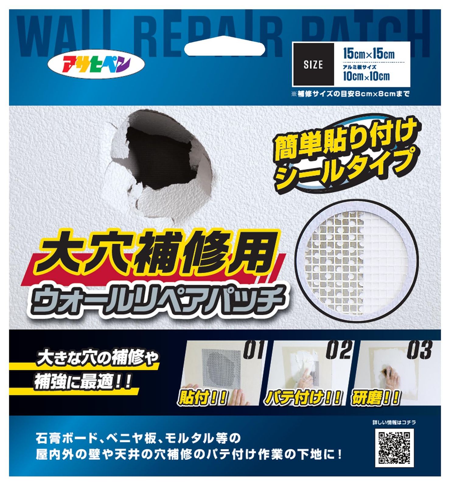 新品 アサヒペン 壁穴補修用 ウォールリペアパッチ HC-WP4 15cm×15cm 補修目安8cm四方 シールタイプ 穴埋め用 補強 石膏ボード ベニヤ板 モルタル