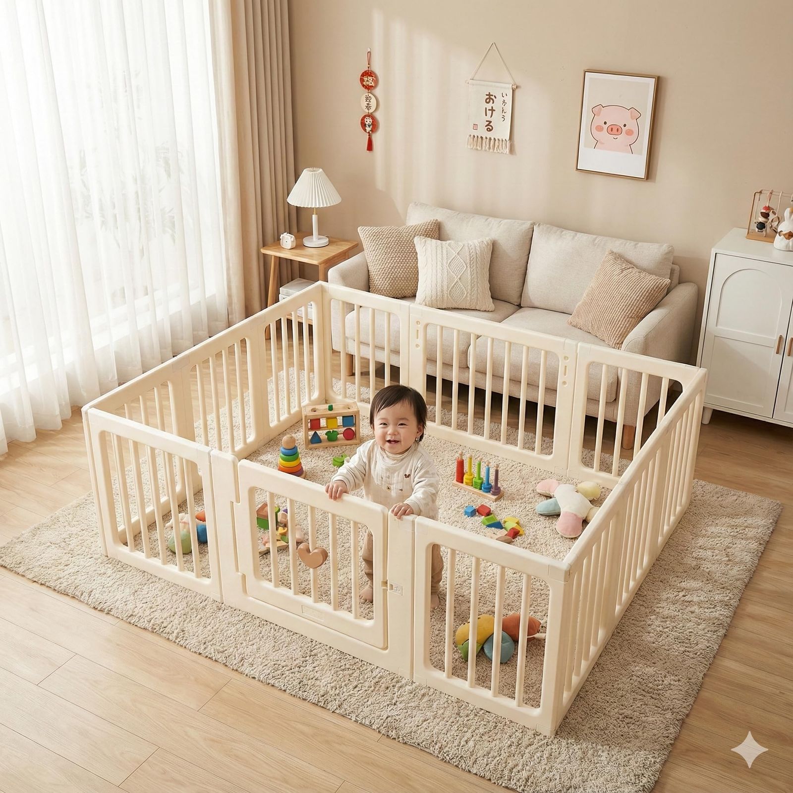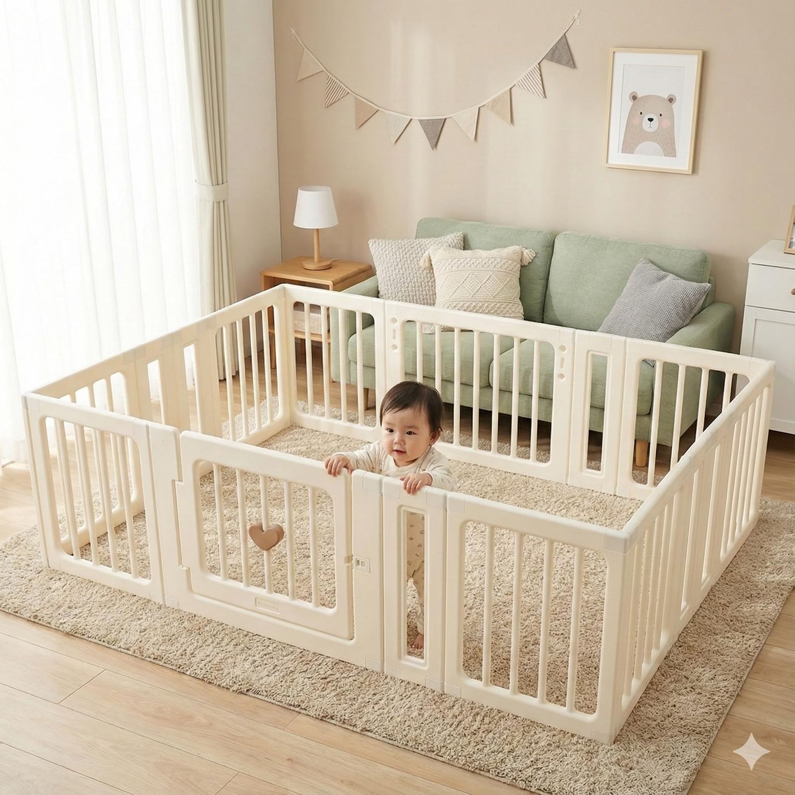 【新品未使用】アウトレット ペット・ベビーサークル 白 開閉ゲート付