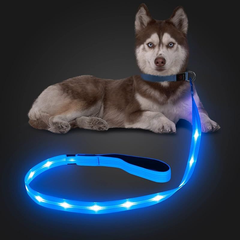Candofly 反射型 LED 犬用リード - 暗闇で光る犬 ライト USB 充電式照明付き犬用ロープ、4 フィートの耐久性のある耐水性点滅犬リード、ペットの犬の夜の散歩用 (青)
