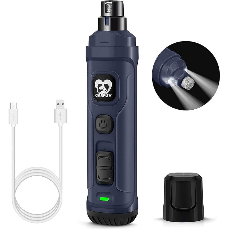 Casfuy犬爪切り電動ー 2つのLEDライト付き - 新バージョン 2スピード 強力な電動ペット用爪切り プロフェッショナル 静かで痛みのない足のグルーミングとスムージング 小中大型犬と猫用…