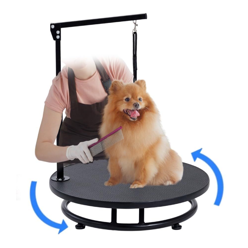 seathestars ペット トリミングテーブル トリミング台 丸 回転式 グルーミングテーブル 小型 中型犬対応 ターンテーブル アーム高さ調節自由自在/